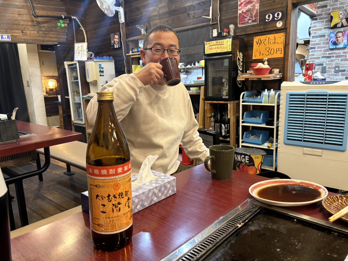 人は、というテーマで語り合いました。テツヤはお湯割り、私はホットジャスミン